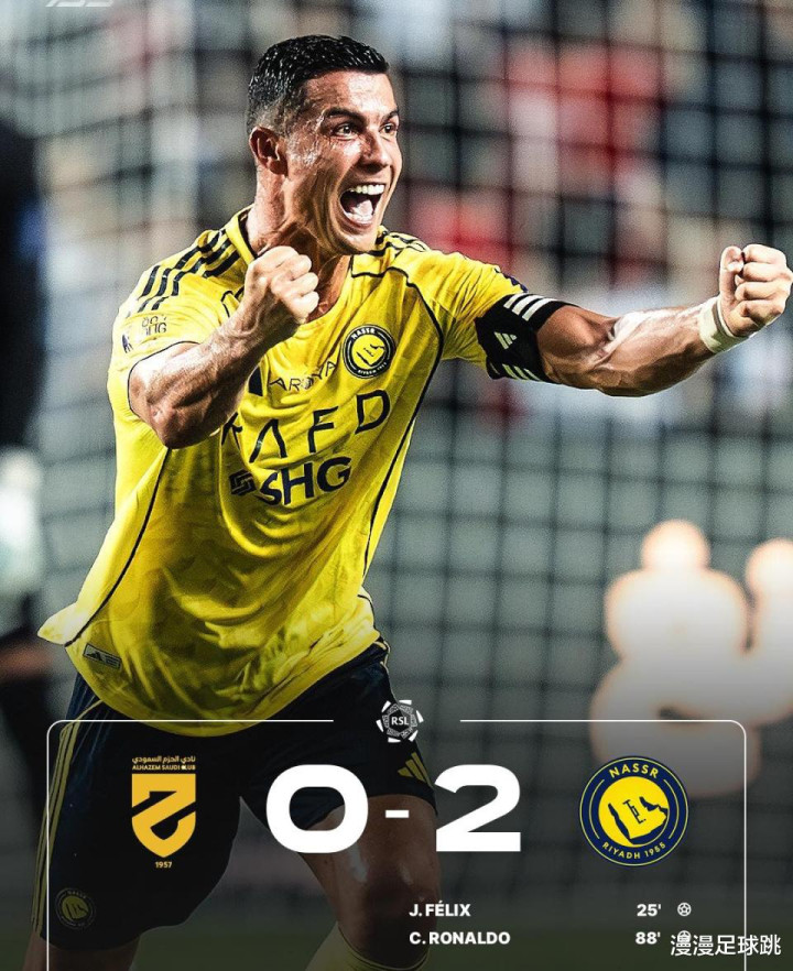 值得一提是,这是C罗在个人生涯中完成第950球的伟大里程碑。从里斯本竞技到曼联、皇马、尤文,再到沙特,跨越21年、征战几大联赛,让世人证明自己,依旧是足坛不老的锋线杀手。本赛季至今,C罗在联赛6场比赛中打进6球,依旧保持着恐怖的效率。小迷弟菲利克斯则彻底摆脱了在欧洲的阴霾:12场12球,重新证明了自己的价值。两人一老一少、风格互补,一个靠力量与经验,一个靠灵性与创造力,成就了至今这支最强的利雅得胜利,或许本赛季,C罗将收获沙超生涯的首座冠军奖杯啦。
