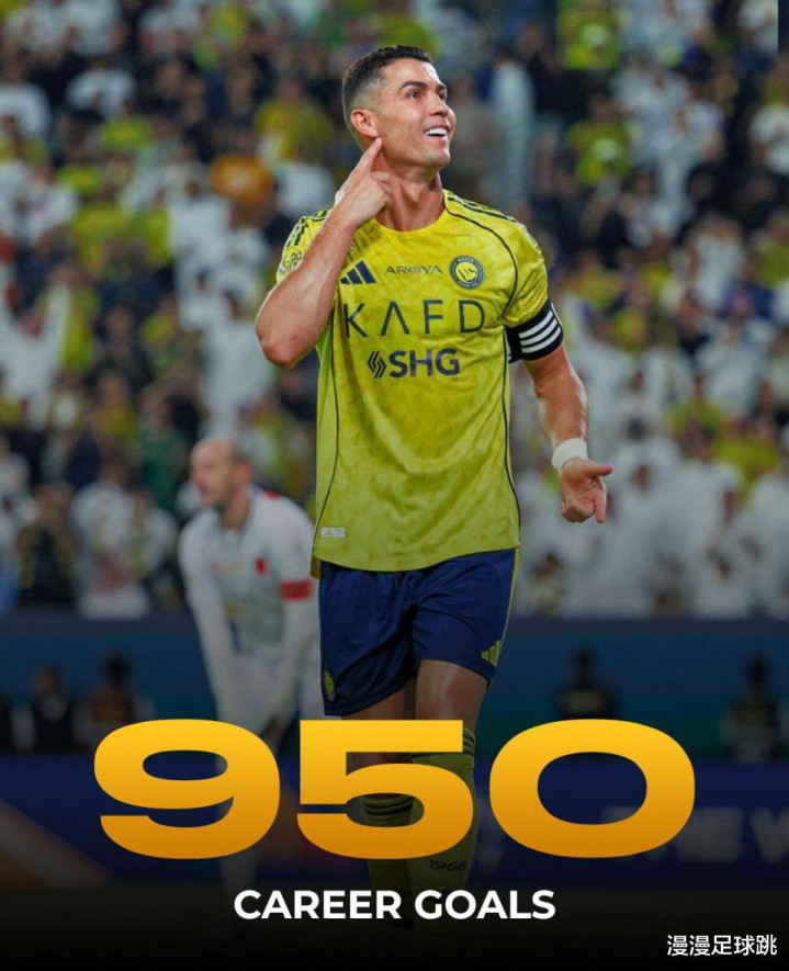 沙特联赛第6轮的夜晚,属于利雅得胜利,属于葡萄牙,更属于不老传奇:克里斯蒂亚诺·罗纳尔多。北京时间10月26日凌晨,利雅得胜利客场挑战哈森姆,凭借菲利克斯和C罗各自的破门,球队以2-0再添三分,豪取联赛六连胜,继续领跑沙超积分榜。而对于C罗来说,这一夜更有特殊意义,这是他职业生涯的第950粒进球,距离千球里程碑,仅仅只差50球啦!